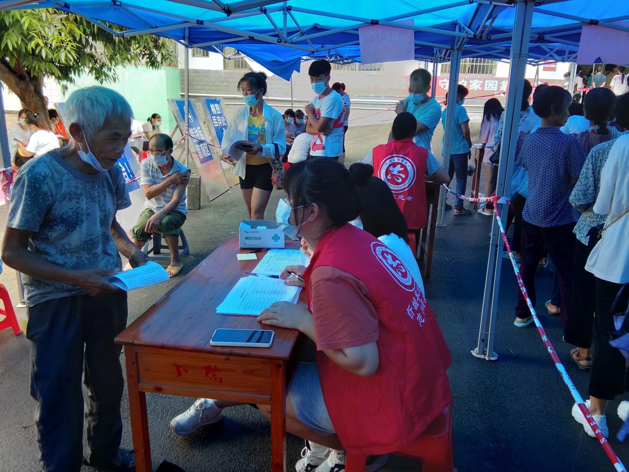 图一为麦彩贵参加全员疫苗接种工作照片