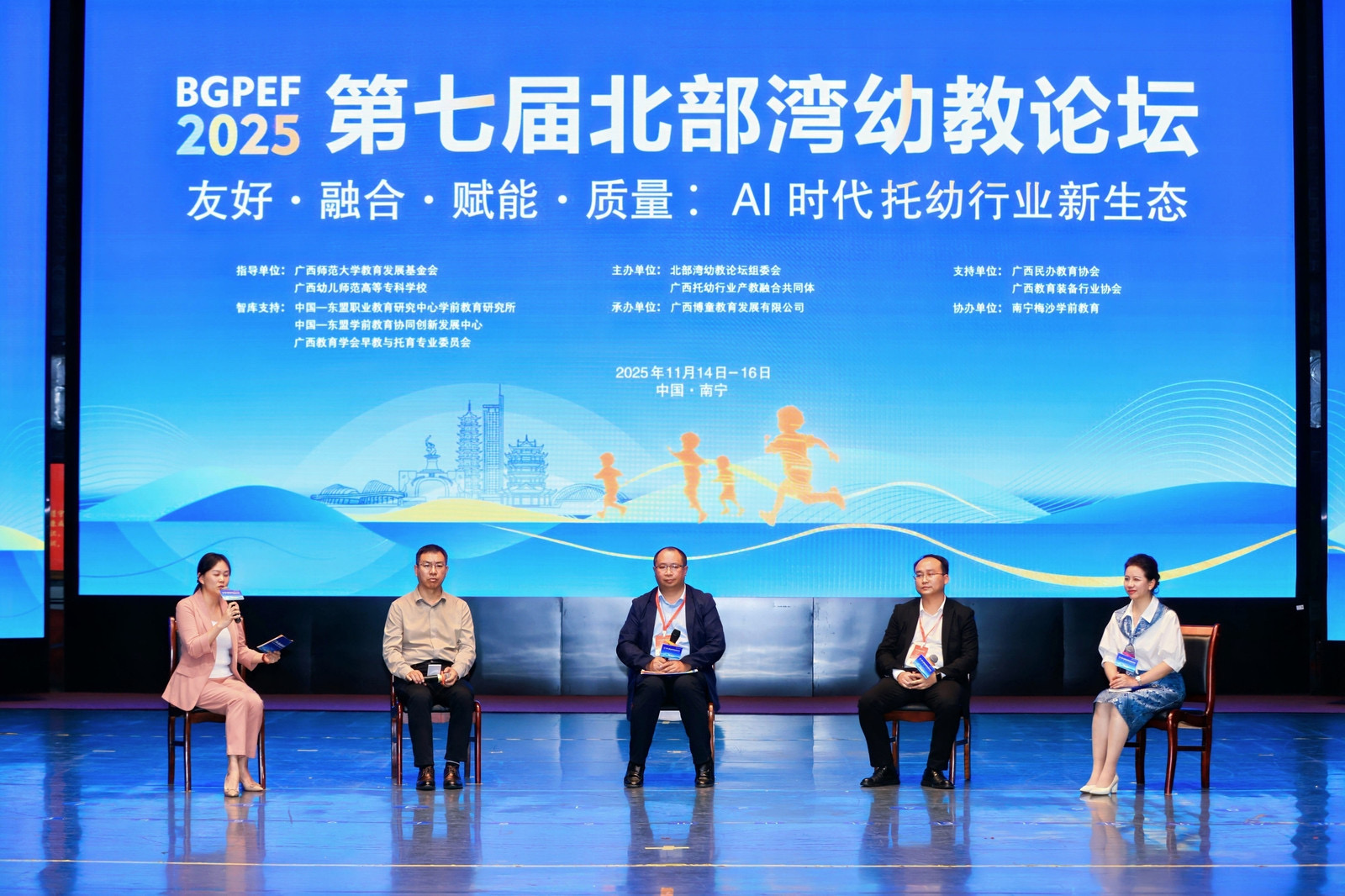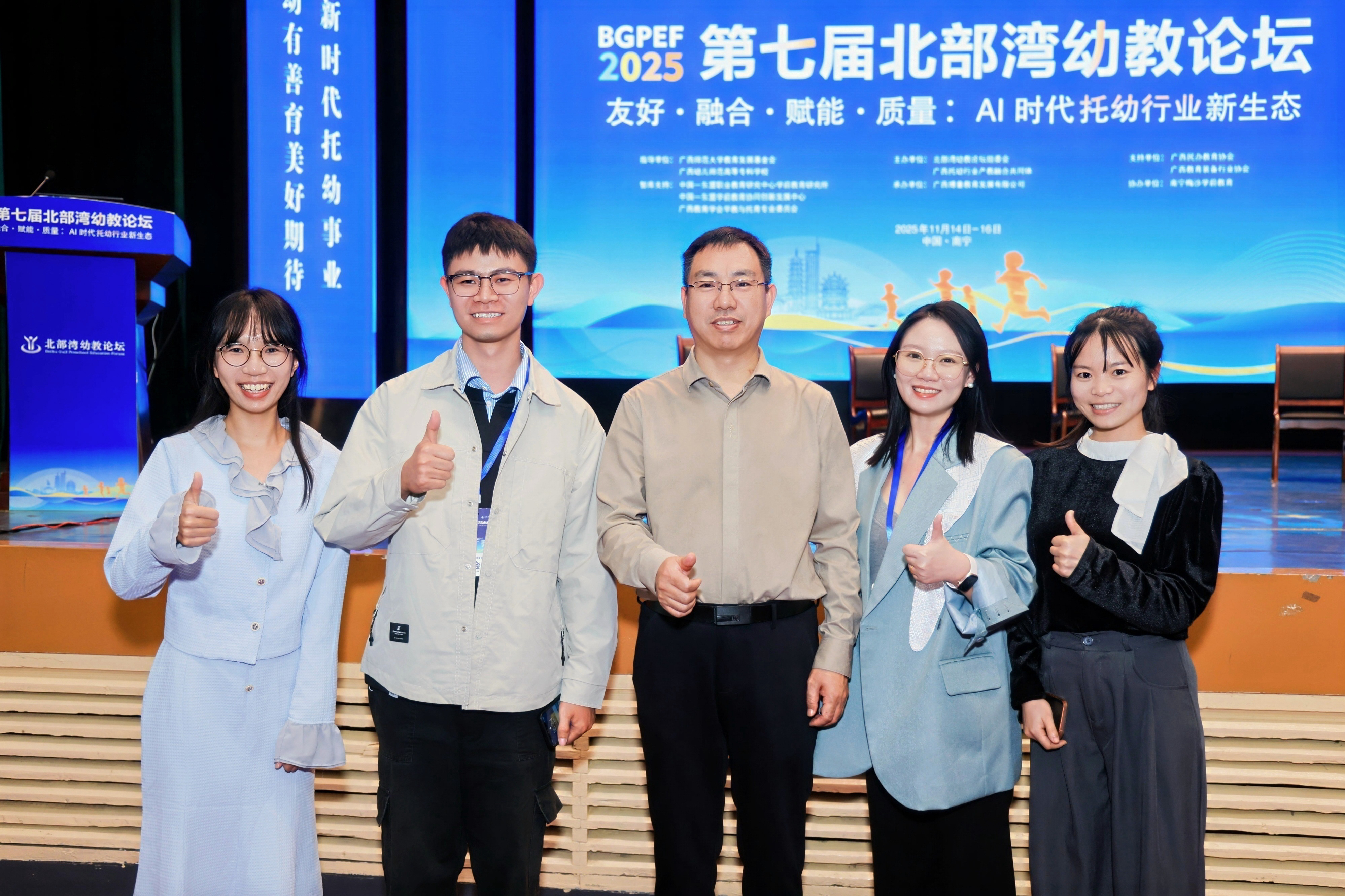 广西外国语学院教育学院学前教育教研室赖春晖老师于11月15-16日参加在南宁举行的2025第七届北部湾幼教论坛。本届论坛以“友好·融合·赋能·质量:AI时代托幼行业新生态”为主题,汇聚区内外900余位从业者与近40位专家学者,围绕AI赋能托幼行业的核心议题展开深度探讨。论坛中的前沿观点与实践案例,为我校学前教育本科专业的未来布局提供了清晰的方向指引。