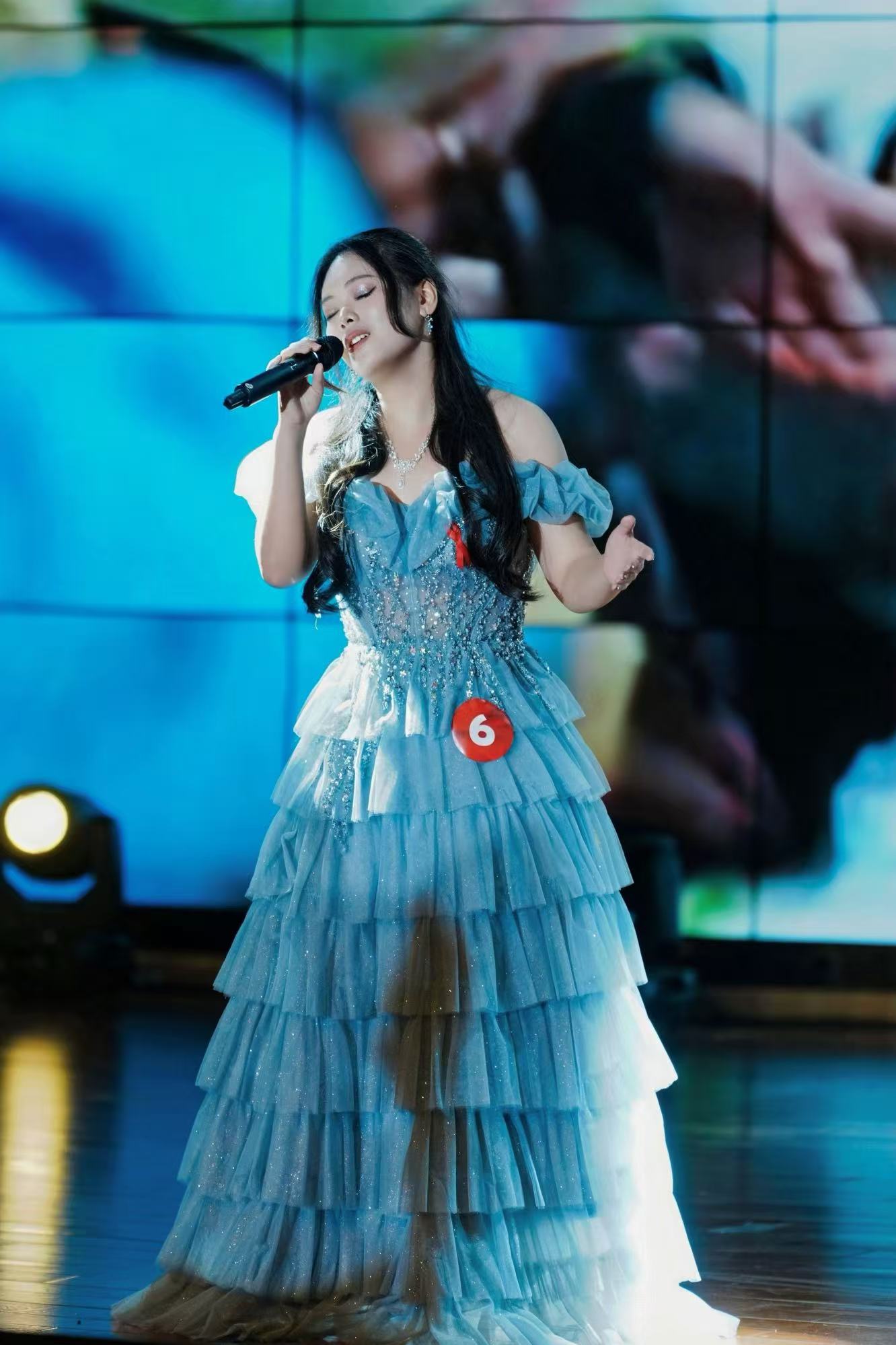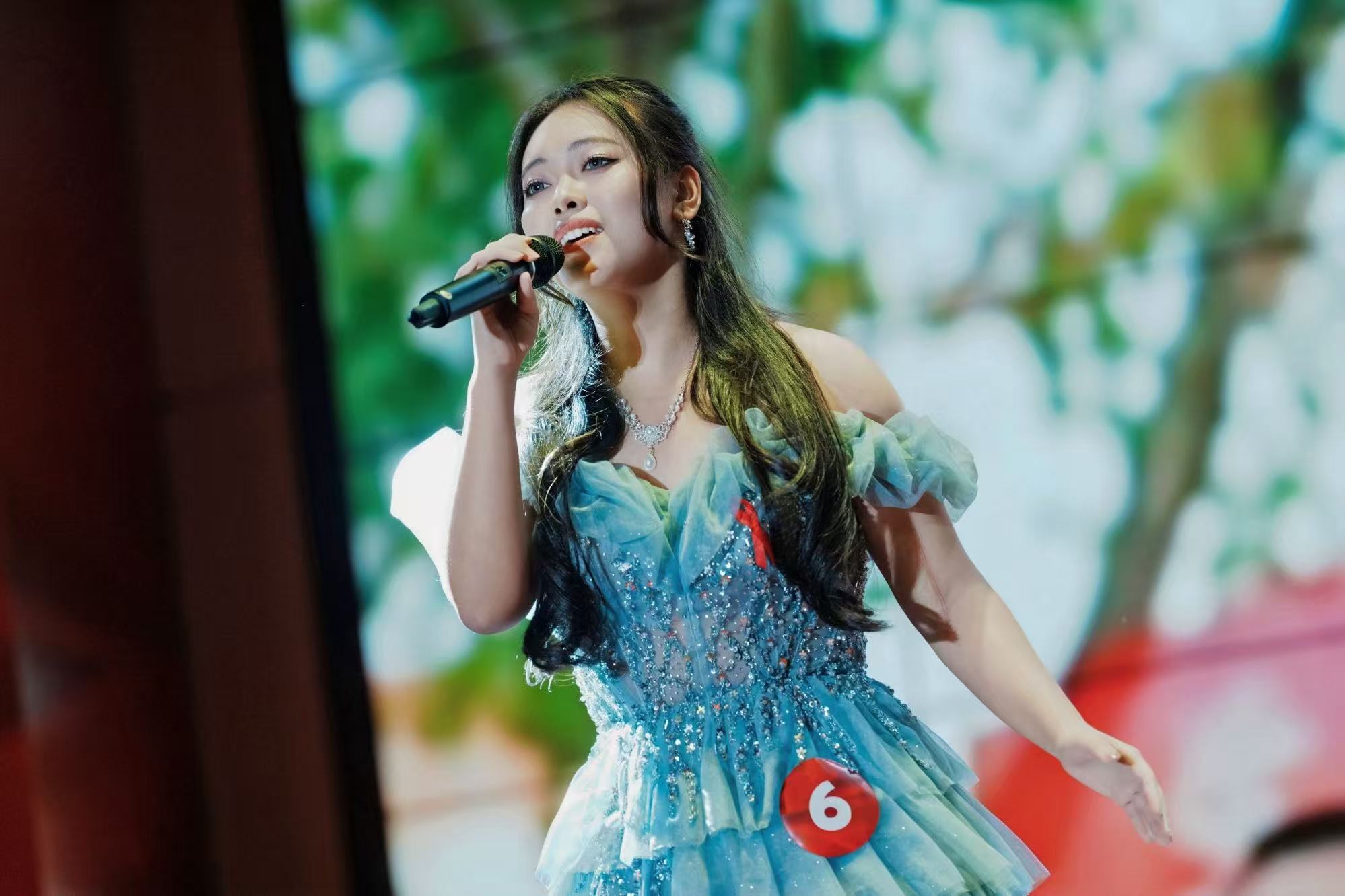 总决赛当天,邓司同学以蔡依林的经典公益歌曲《让爱传出去》作为参赛曲目。舞台上,她的嗓音清亮且富有感染力,从歌词情感的挖掘到旋律节奏的把控,每一处演绎都深度融入了对“红丝带”公益精神的理解——传递关爱、消除歧视、凝聚温暖。邓司同学将公益热忱与对人间大爱的赞颂全然倾注于歌声中,纯粹的情感表达深深打动了现场评委与观众。最终,评委团从演唱技巧、舞台表现力、主题契合度等多维度综合评分,邓司同学以全场最高分97.33分,稳稳摘得这一区级赛事的冠军奖杯。