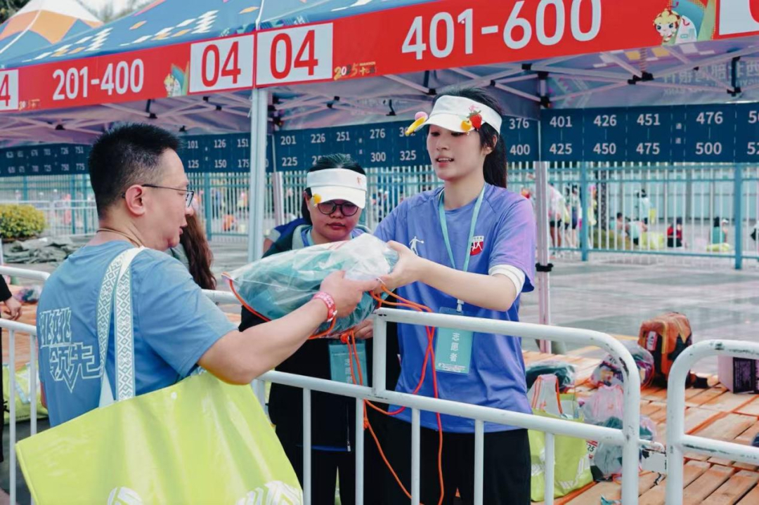 赛事当天,教育学院的志愿者们分赴各个岗位,用行动诠释 “奉献、友爱、互助、进步”的志愿精神。在起终点区域,学院学子化身 “活地图”与“暖心向导”,凭借提前扎实掌握的场地知识,引导选手快速有序完成检录、存包,赛后及时疏导人流疏散,耐心解答选手关于路线、补给等各类咨询,其细致周到的服务获得不少选手点赞。