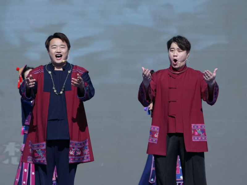 为传承弘扬非物质文化遗产,深化跨区域文化交流合作,国家级铜鼓文化 (河池) 生态保护区非物质文化遗产展示展演暨滇黔桂铜鼓文化交流活动在金城江区文体中心广场(体育广场)隆重举行。广西外国语学院教育学院蔡宇涛老师、廖晏老师受邀参演,凭借毛南族民歌《十送党恩》献上精彩表演,赢得现场观众广泛赞誉。